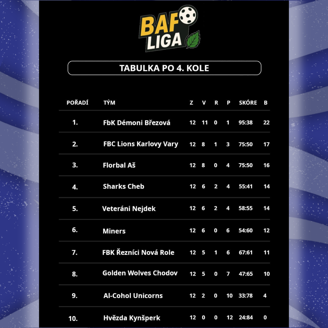 Tým Florbal Aš má za sebou úspěšné čtvrté kolo Březovské amatérské florbalové ligy (BAFL). Na programu měl tři utkání, ze kterých dokázal vytěžit maximum – tři vítězství: